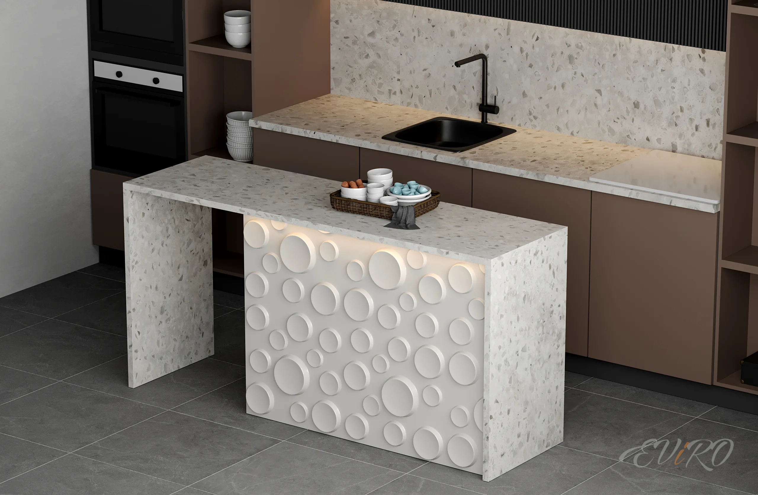Гипсовая 3D панель EViRO Кратеры — это идеальное решение для тех, кто ищет способ преобразить свое пространство при помощи декоративных панелей, подчеркивающих уникальный стиль интерьера. Эти панели для внутренней отделки наделены не только эстетической привлекательностью, но и функциональностью, что делает их отличным выбором как для жилых, так и для коммерческих помещений.