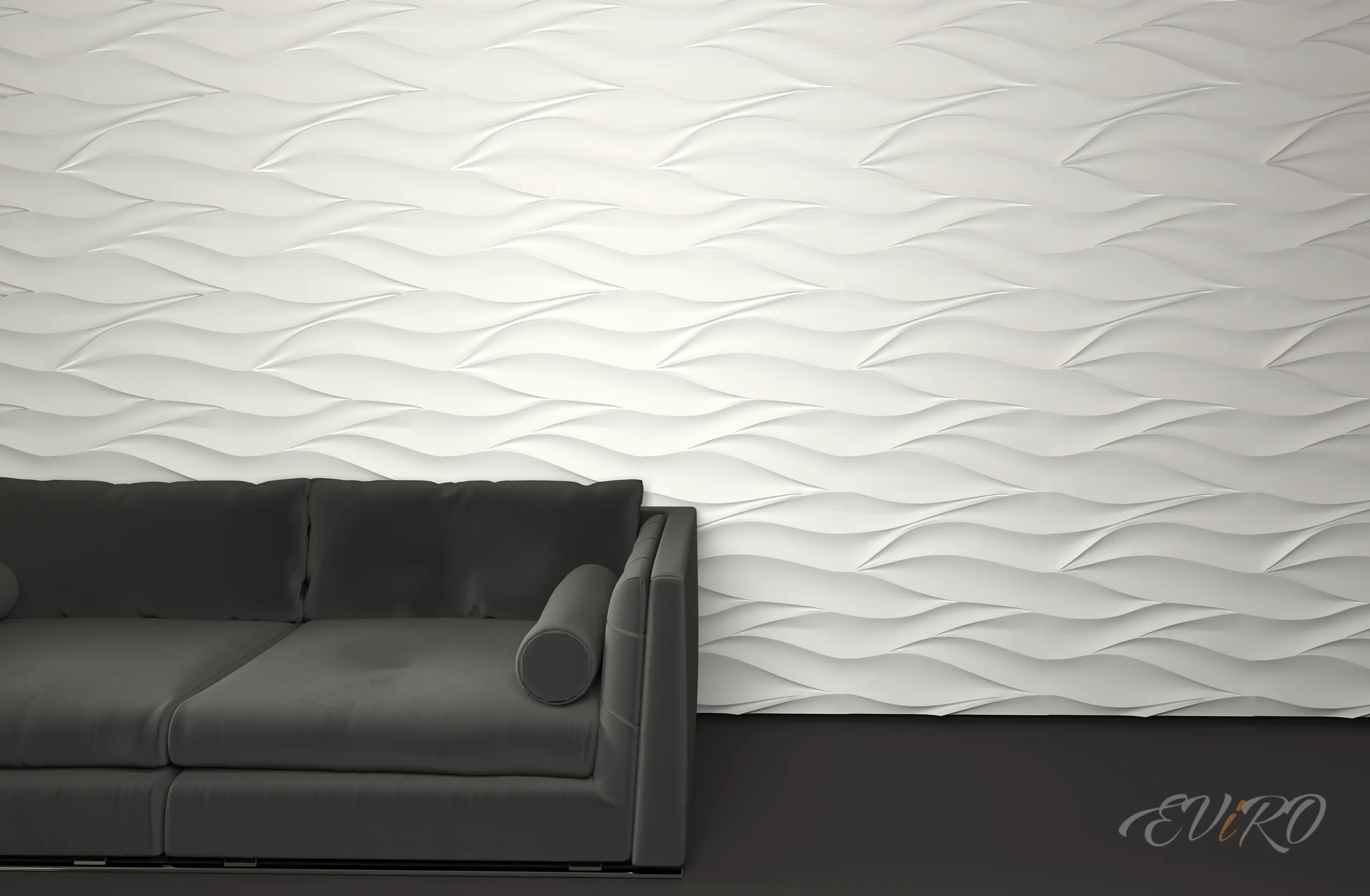 3D-панель для стен EViRO Leave представляет собой настенные панели в виде волн, которые могут быть использованы для создания потрясающих эффектов в вашем интерьере. Их установка проста и удобна, благодаря легкому весу и прочному материалу, что позволяет быстро достичь цели.