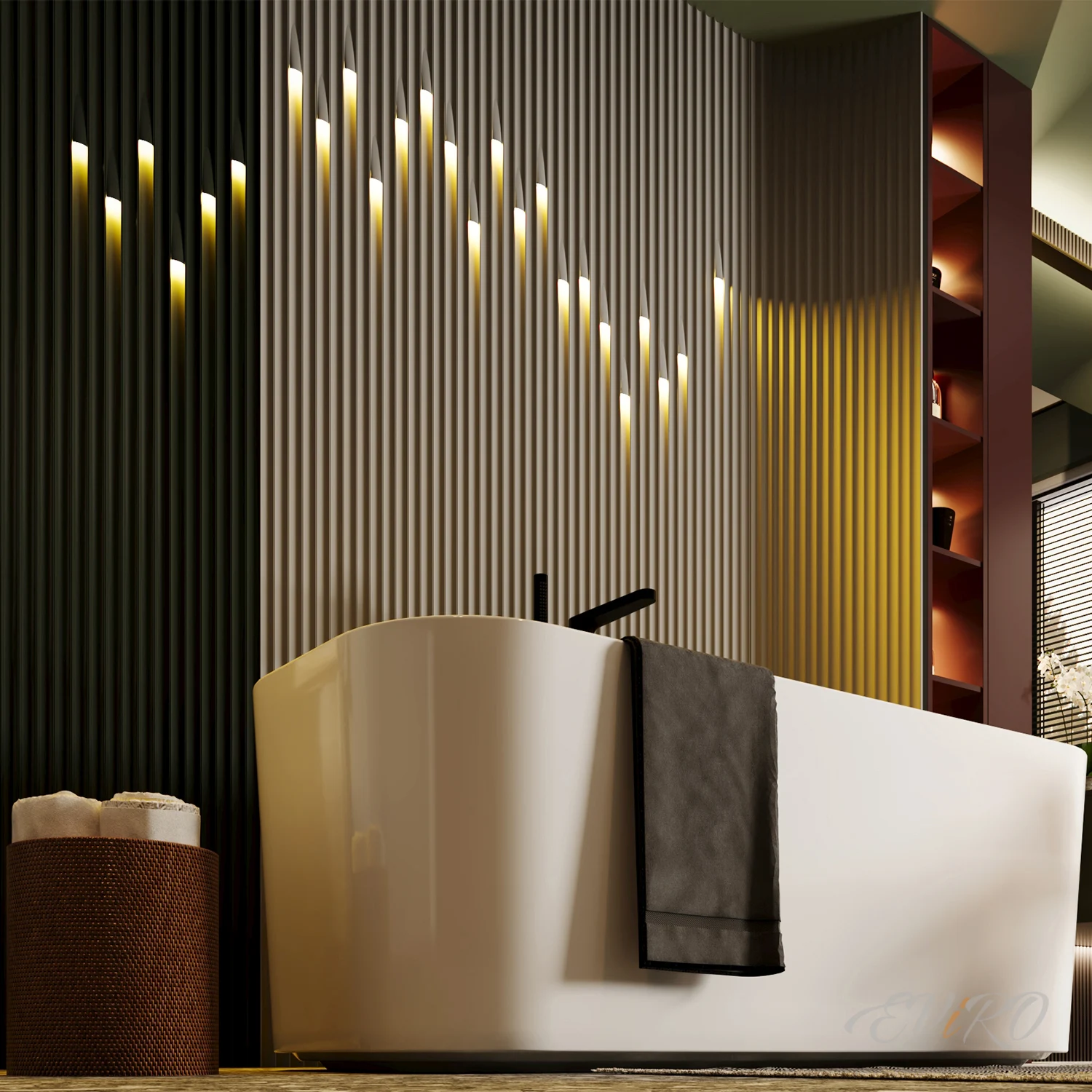 Дизайн ванной комнаты – это не просто выбор плитки и сантехники. Это создание спокойствия пространства, где начинается и завершается каждый день. Атмосфера, царящая в этом помещении, напрямую влияет на наше настроение и общее самочувствие, поэтому к его оформлению нужно подходить с особой тщательностью и вниманием к деталям. Забудьте о стандартных решениях – сегодня мир отделочных материалов предлагает невероятное разнообразие, позволяющее воплотить в жизнь самые смелые и оригинальные замыслы. Одним из наиболее интересных и перспективных современных решений для отделки стен в ванной комнате являются гипсовые 3D панели под покраску. Этот материал открывает перед дизайнерами поистине безграничные возможности. Представьте себе: можно создавать сложные рельефные композиции, играть с фактурой и цветом, экспериментировать с освещением, формируя неповторимый стиль, который идеально отражает вашу индивидуальность и предпочтения. Стеновые гипсовые панели – это не просто замена привычной керамической плитки, это инструмент для создания уникального арт-объекта в вашем доме. Установка гипсовых панелей под покраску требует надлежащей защиты материала. Крайне рекомендуется использовать влагостойкие краски или специальные лаки, которые создадут надежный барьер против проникновения влаги и предотвращения развития плесени и грибка. Это не только гарантирует долговечность отделки гипсовыми панелями, но и обеспечивает гигиеничность и безопасность. Правильно подобранная краска или лак, кроме того, подчеркнет уникальную текстуру гипсовых панелей, усилив визуальный 3d эффект и придав им завершенный, элегантный вид. Рассмотрим, например, использование гипсовых реек EViRO Steps – это стильное и функциональное решение, которое превращает обычную отделку стен в настоящее произведение искусства. Уникальность декоративных плит EVIRO Steps заключается не только в привлекательном внешнем виде, но и в возможности интегрировать в рейки декоративную подсветку. Встроенные световые элементы – это отдельные модули, устанавливаемые во время монтажа 3D панелей. Их расположение и направление свечения (вверх или вниз) – полностью на ваше усмотрение. Это позволяет создавать мягкое, рассеянное освещение, наполняющее ванную комнату атмосферой уюта и комфорта, способствуя расслаблению после напряженного дня. Такое освещение не только функционально, но и служит мощным декоративным элементом, подчеркивая изысканность и уникальность дизайна ванной комнаты. Гипсовые рейки для стен EViRO Steps – это больше, чем просто отделочный материал. Это инновационное решение, позволяющее создать индивидуальный и запоминающийся интерьер, полный комфорта, уюта и стиля.
