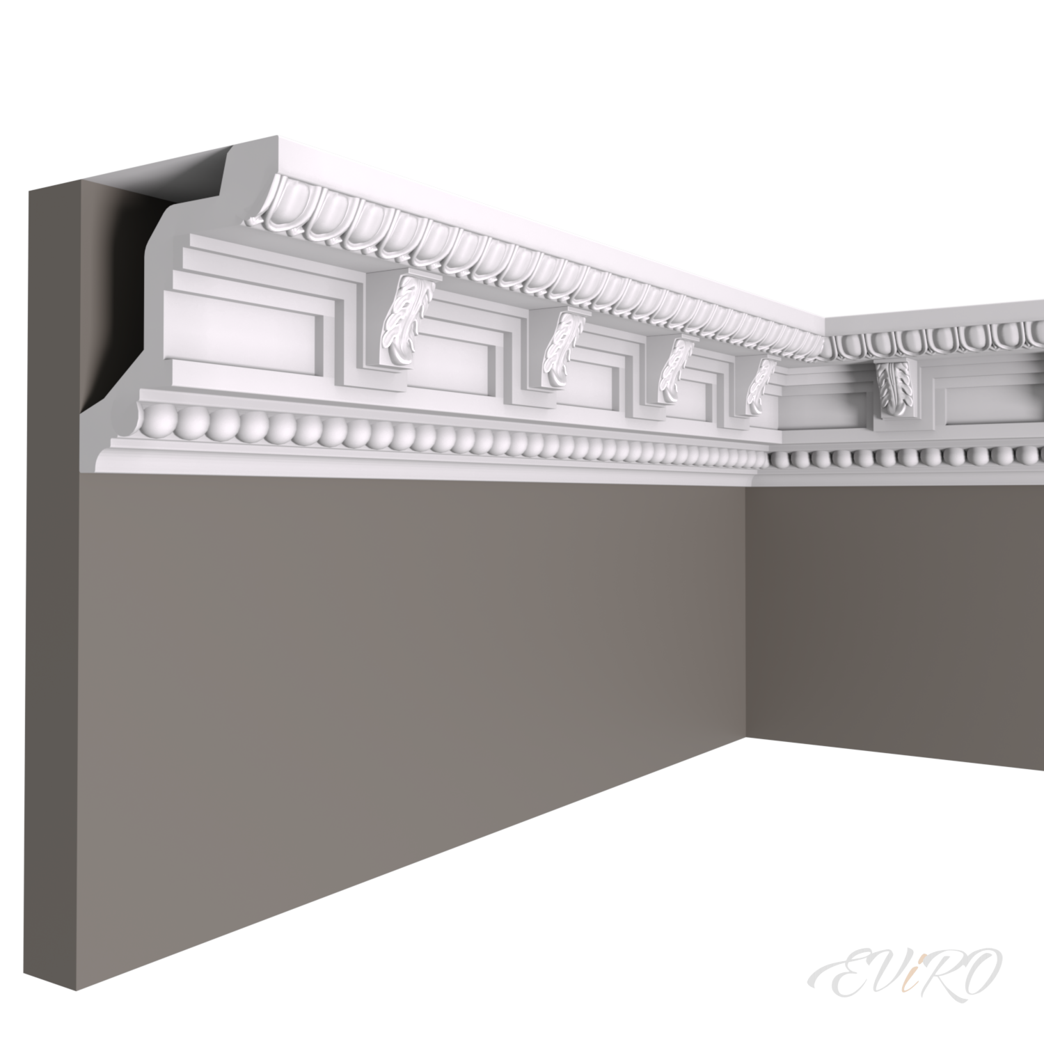Специалисты компании ЕВиРО с большой ответственностью подошли к создаваемым моделям гипсовых карнизов с орнаментом, каждая модель неповторима и по-своему уникальна. Материал, из которого изготавливаются карнизы фабрики ЕВиРО, скульптурный гипс, армированный стеклофиброволокном, является экологически чистым, не горючим, влагоустойчивым, а так же прочным и долговечным. Карнизы ЕВиРО из скульптурного гипса могут быть окрашены в любой цвет, а так же могут быть отделаны с эффектом серебра, золота, стали, дерева и другого декоративного напыления. Гипсовые карнизы ЕВиРО совмещают в себе красоту и надежность. Применение карнизов ЕВиРО в интерьере обеспечивает определенный шик и уют.