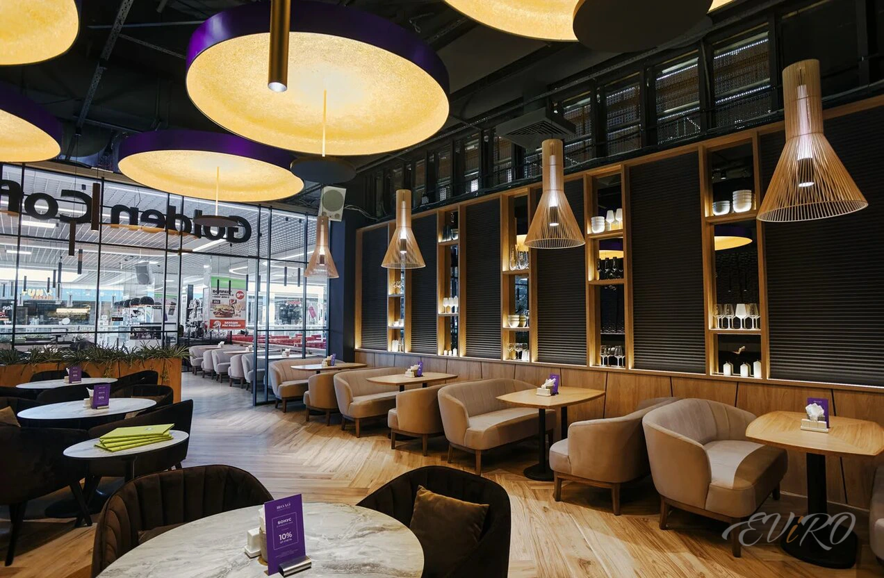 Интерьер "Golden Coffee" становится уникальным опытом, где клиенты могут наслаждаться не только ароматным кофе и вкусными десертами, но и визуальным наслаждением. Этот проект демонстрирует, как искусство креативной отделки, основанное на инновационных 3D панелях, может превратить любое пространство в удивительное и уютное место для встреч и отдыха.